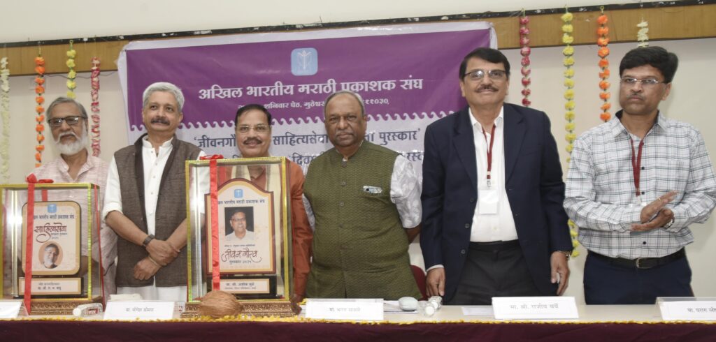 त्यानंतर प्रकाशक संघाचे अतिशय प्रतिष्ठेचे जीवनगौरव व साहित्यसेवा कृतज्ञता पुरस्कार मा. श्री. अशोक मुळे आणि मा. श्री. ल. म. कडू यांना प्रदान करण्यात आले. श्री. ल. म. कडू यांनी आपल्या मनोगतात बालसाहित्याचे महत्त्वं विशद केले, तर श्री. मुळे यांनी आपल्या मनोगतात आपली प्रकाशन व्यवसायाची वाटचाल सांगून पुरस्काराबद्दल प्रकाशक संघाप्रति आपली कृतज्ञता व्यक्त केली.